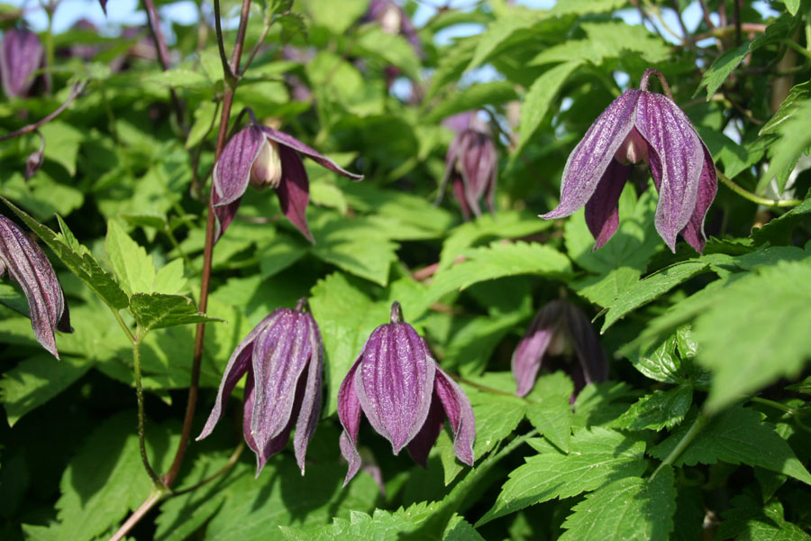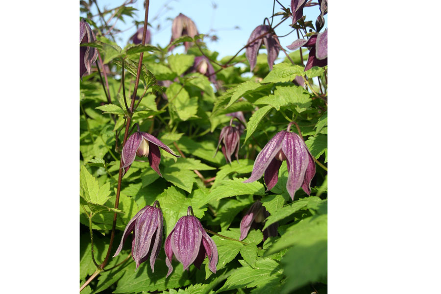 Eine der vielen Wunderbaren Clematis, die Magnus Johnson in Schweden züchtete. Seine Passion galt vor allem den frühblühenden Alpina Arten. ‚Columnella‘ klettert bis auf 3 m Höhe und blüht von sonnigen Standorten bis in den lichten Schatten. Die schönste Färbung zeigt sie jedoch in der Sonne.